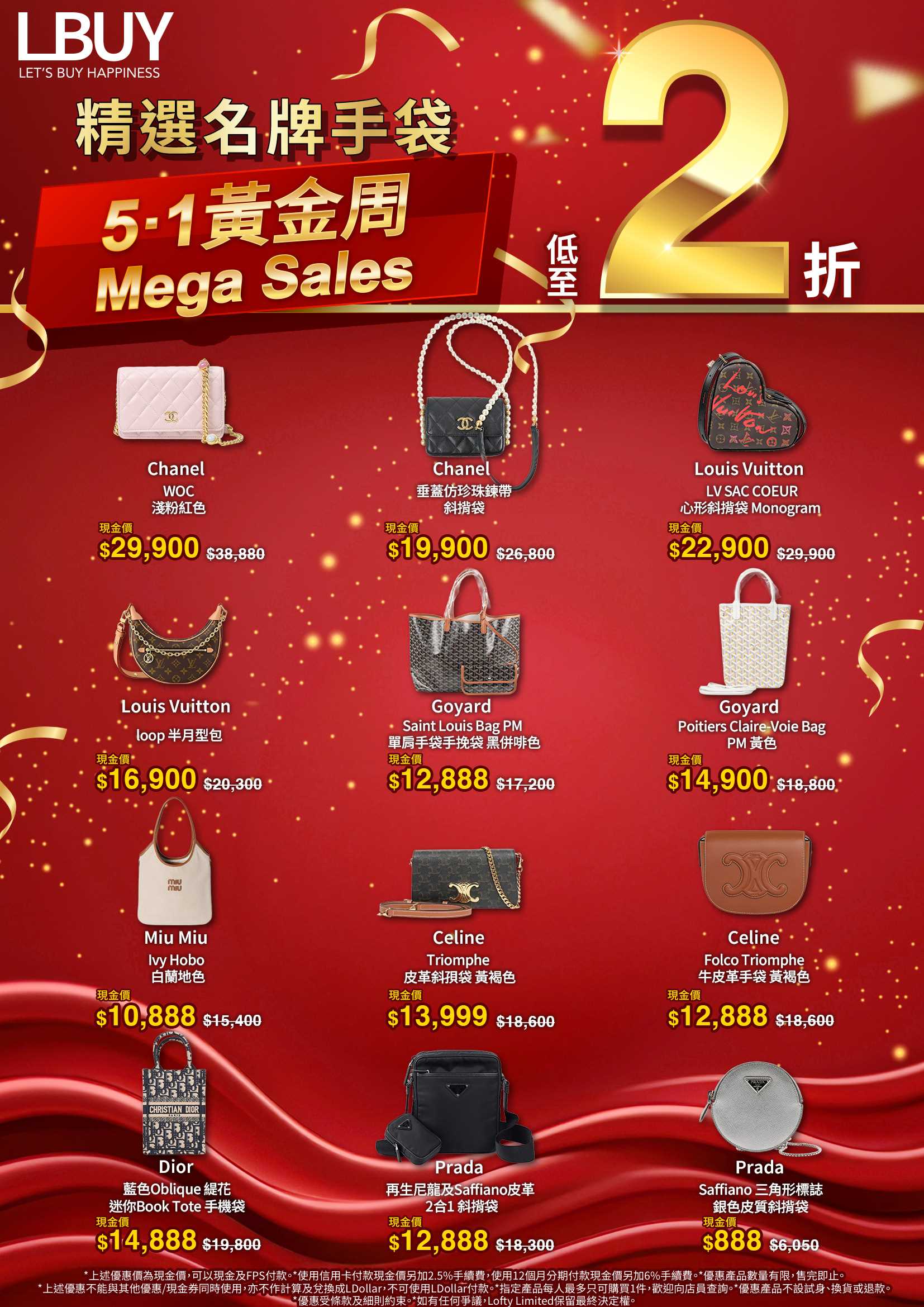 今個 5.1 黃金周,LBuy 為您呈獻年度矚目盛事 —— 精選名牌手袋限時激減低至2折! ✨🛍️