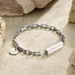 Inspired by the Miami trip of the designer, this stainless steel box chain bracelet combines the sunshine and beaches of Miami with the mysterious love story of Vizcaya Museum and Gardens. Natural gemstones that possess healing powers embedded onto the exclusive octagonal metal bar, making the engraved affectionate words even more healing and romantic.