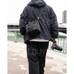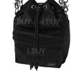 Details: Black nylon Detachable adjustable shoulder strap Front zipped pocket, appliquéd designer emblem Fully lined Drawstring fastening Made in Japan