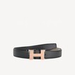 Hermes Mini Constance 24mm Reversible Belt Etoupe and Black with Rose Gold Hardware