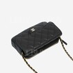 Chanel Black Grained Calfskin Gold CC Logo Phone Holder with Chain Handbag AP2096