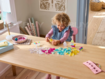 Kids begin by building heart, ghost, mermaid, star and unicorn toys. As their building confidence grows, they move onto a spaceship, cloud, shooting star, bird, narwhal, ice cream and flower. Next, they can scale up the creative fun with a large castle and dragon toy. Translucent bricks, eye and mouth pieces and hanger-bricks for display add see-through sparkle and extra creative fun to kids’ creations.