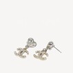 Chanel Crystal Heart CC Logo Pendant Earrings ABA909