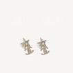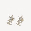 Chanel Light Gold Star Pendant Rhinestone CC Logo Earrings ABA383
