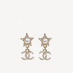 Chanel Pearl Star with Rhinestone CC Logo Gold Pendant Earrings ABC657