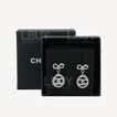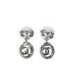 Chanel Silver Rhinestone Bow Oval Pendant CC Logo Earrings AB9238