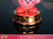 The statue is inspired by the "We Heart Kirby" sign that emerges from the ground at the end of the game. The "We Love Kirby" statue is beautifully replicated by having the original scheme. The words "We Heart Kirby" are portrayed in gold and the heart is a bright metallic pink. The glossy finish in Kirby's iris with the gradient makes him look more animated. His body and feet have a matte finish which makes it seem as if Kirby is holding up the sign himself. To go with this dynamic statue, the base has triangles on the sides. It has been plated with a darker, reddish gold which brings out the layers of gold, making the structure more dynamic. The gold plating has a reflective finish, making it look shiny, and makes the spherical aspect of Kirby stand out!