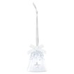 This exquisite and compact Swarovski Christmas clock pendant is ready to ring the bells of a dreamy winter day. The hand-crafted glass bell features a beautifully crafted Swarovski-like crystal star with 231 cut faces, plus a gorgeous white ribbon for instant glittering brilliance. The bezel is decorated with around 1,000 beautifully small Swarovski-like crystals and a number of star-shaped Swarovski crystals that cleverly create a harmonious winter atmosphere. Since all Swarovski imitation crystals are hand-pasted, each Christmas bell pendant is slightly different. This pendant adds a touch of embellishment to your décor and is also a gift choice for special occasions. This is a decoration item, not a toy and is not intended for use by children under 15 years of age.