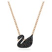 THIS ELEGANT AND CHARMING ROSE GOLD PLATED PENDANT EMULATES THE BRAND'S LOGO — THE SWAN'S NOBLE CHARM — IN A MODERN WAY. Sophisticated design with dense black crystals infuses a soft, sparkling glow to your outfit. The pendant measures 2 x 1.5 cm and is equipped with a 38 cm long rose gold plated necklace.
