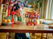 The lantern is also designed to be an inspiring pretend-play toy for imaginative kids. The top of the lantern is removable for easy access to the top tier (also removable), which folds out to reveal 3 festive scenes featuring a buildable food stall, decorations stall and a shadow theater. The set also includes 5 minifigures – 2 adults, 2 children and a character in a Year of the Snake costume – for role-play fun.