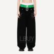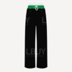 These Alexander Wang layered-waist straight-leg jeans create a layered design in a monochrome green color that blends street style with high-end fashion perfectly. The pants feature a double-layer waist design with an elastic logo belt at the top, and drawstring detail at the bottom, creating a visual effect similar to a pair of sweatpants and jeans. The high-waisted cut stretches the long leg line, combined with a classic five-pocket design and hidden button pants, making it practical and stylish. Straight-leg pants are easy to handle and stand out in a casual and trendy style, showing a no-strings-attached attitude.