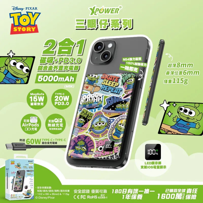 Xpower X TOY STORY ALIENS SERIES 2 In 1 PD 3.0+MagSafe 5000mAh Ultrathin Aluminium Power Bank (M5K)