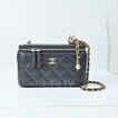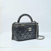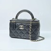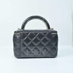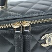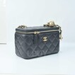 Chanel Black Long Vanity Case CC Logo with Top Handle and Light Gold Chain AP2199