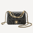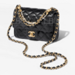Chanel Gold CC Logo Shiny Lambskin Pearls Chain 17cm Mini Flap Bag Black AS4385