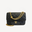 Chanel Heart Chain Adjustable Buckle CC Logo Flap Bag Black 24cm AS3921