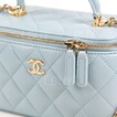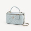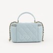 Chanel Light Blue Long Vanity Case with Top Handle and Chain AP2199