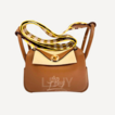 Hermes Mini Lindy 金棕色 金扣 格仔寛帶 W stamp