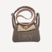 Hermes Mini Lindy Elephant Grey Gold Buckle Denim Ribbon