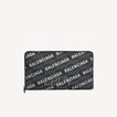 Balenciaga Logo Printed Leather Zipper Long Wallet Black 594317