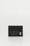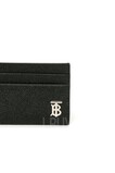Burberry TB Silver Logo Grained Cowhide Card Holder Black