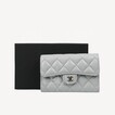 Chanel Classic Medium Flap Wallet Light Grey with Light Gold Tone Metal AP0232