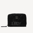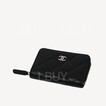 Chanel Classic Zip Around Coin Purse Card Holder Black Sliver CC Logo AP0216