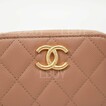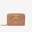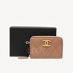 Chanel Gold CC Logo Zip Coin Wallet Card Holder Beige AP3521
