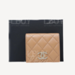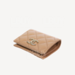 Chanel Grained Calfskin Gold CC Logo Bi-fold Short Wallet Apricot AP3055