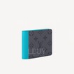This multiple wallet with simple lines is made of Monogram Eclipse Reverse coated canvas, with Turquoise-colored cowhide trim on the ridge, adding a touch of bright color to the wallet. Featuring eight card slots and a bill compartment, this compact wallet fits into most pockets or handbags.
