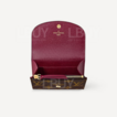 Fuchsia Pink Monogram Coated Canvas Grained Cowhide Trim Granulated Cowhide Lining Gold Metallic Button Closure Organ Compartment Zipper Coin Pocket Two Business Card Slots