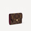 This mini Rosalie coin purse is made of Monogram canvas and lined with colored grained leather. The coin purse is compact and has a spacious interior with an organ-style compartment, two business card slots and a zippered coin compartment with leather zippers.
