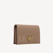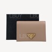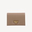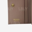 Prada Saffiano Triang Triangle Logo Leather Button Short Wallet with Zipped Coin Purse Light Pink 1MV021