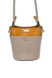* 尺寸/码 : 长18.5 X 宽10 X 高19 (厘米) * 颜色 : Sunflower Yellow * 质料 : 亚麻布, 小牛皮