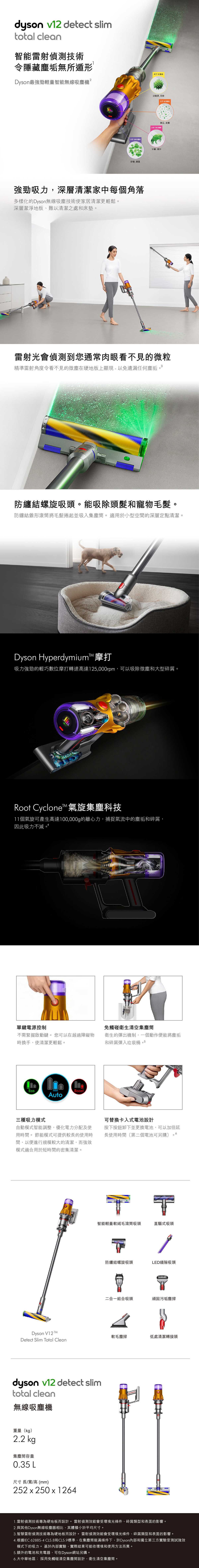 Dyson V12 Detect Slim™ Total Clean 无线吸尘机 (2022版)