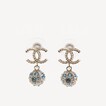 Chanel 蓝色水钻吊坠金色 CC Logo耳环 AB0582