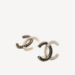 Chanel CC logo 黑白双色水晶金色耳环 ABB909