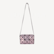 这款肩背袋以几何立方造型为设计亮点,由多个金属质感三角片拼接构成,展现出极简而富现代感的结构美学。拉炼与口袋巧妙隐藏于三角拼接之间,设计一体化,线条俐落流畅。