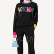 Moschino 女装彩虹Logo黑色长袖针织上衣