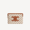 呢款 Celine 小号 Triomphe 印花饰带手拿包 採用品牌标志性 Triomphe 印花帆布 制成,搭配金色饰面与可拆式手挽带,展现简约又精緻嘅巴黎时尚气质。实用主隔层容量充足,可收纳手机、卡片套及随身小物,无论手拎定放入大袋都得体有型。