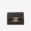 Celine Triomphe Compact 凯旋门帆布短银包 可拆式拉链卡片套 黄褐色