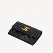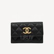 Chanel 金色CC Logo垂盖卡片套 黑色 AP3523