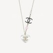 Chanel 珍珠白色心心吊坠CC Logo项链 AB7001