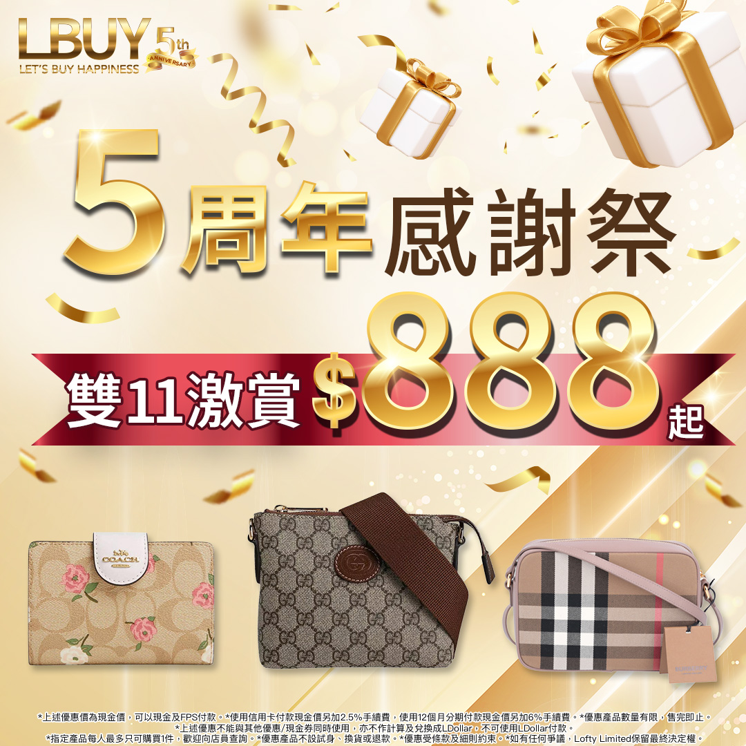 【💎LBuy 5周年感謝祭・雙11激賞名牌潮牌 $888 起🔥】 【💎LBuy 5周年感謝祭・雙11激賞名牌潮牌 $888 起🔥】盛裝季節,LBuy 為你呈獻雙11限時激賞優惠,精選指定品牌產品均一價 $888 / $4,888 發售😍,讓你以超值價入手心頭好!今個星期主打品牌包括:Coach、Gucci、Burberry 及 Ganni——不論是causal風格定優雅氣質style,都能找到屬於你嘅完美配搭。每件單品都散發獨特品味,讓你在人群中閃耀出眾✨ 2025-10-24 18:02:50