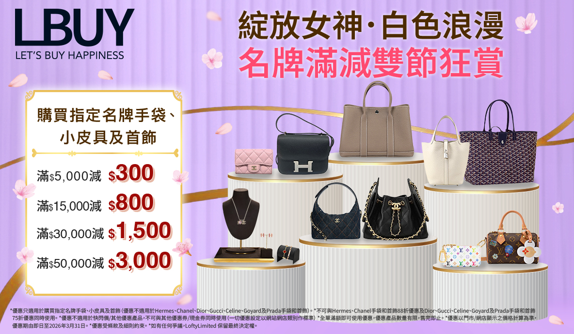 #LBuy #LBuyHK #LBuyMoko#LBuyYoho #LBuyDPARK #LBuyCentral #DGGbyLBUY扭蛋站 #2026正版正貨商標 #購物優惠 #折扣優惠 #女神節 #白色情人節 #名牌手袋 #小皮具 #首飾 #名牌折扣 #奢華穿搭 #春日浪漫 #禮物靈感 #三月優惠