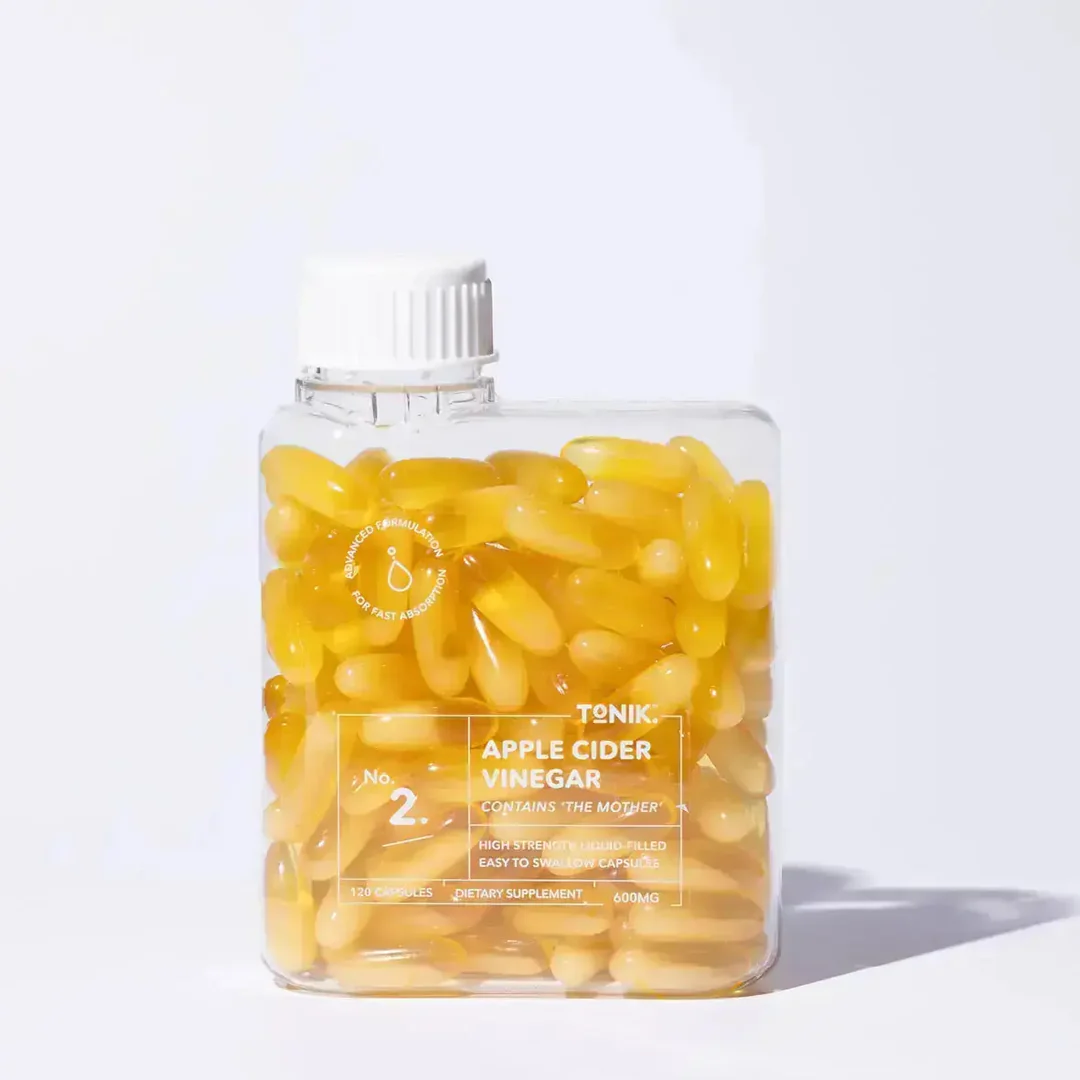 Tonik No.2 有機蘋果醋膠囊是世界上第一個,也是唯一一個膠囊盛載著液體蘋果醋,可以幫您輕鬆攝取和吸收膠囊中 6 倍濃度的蘋果醋。