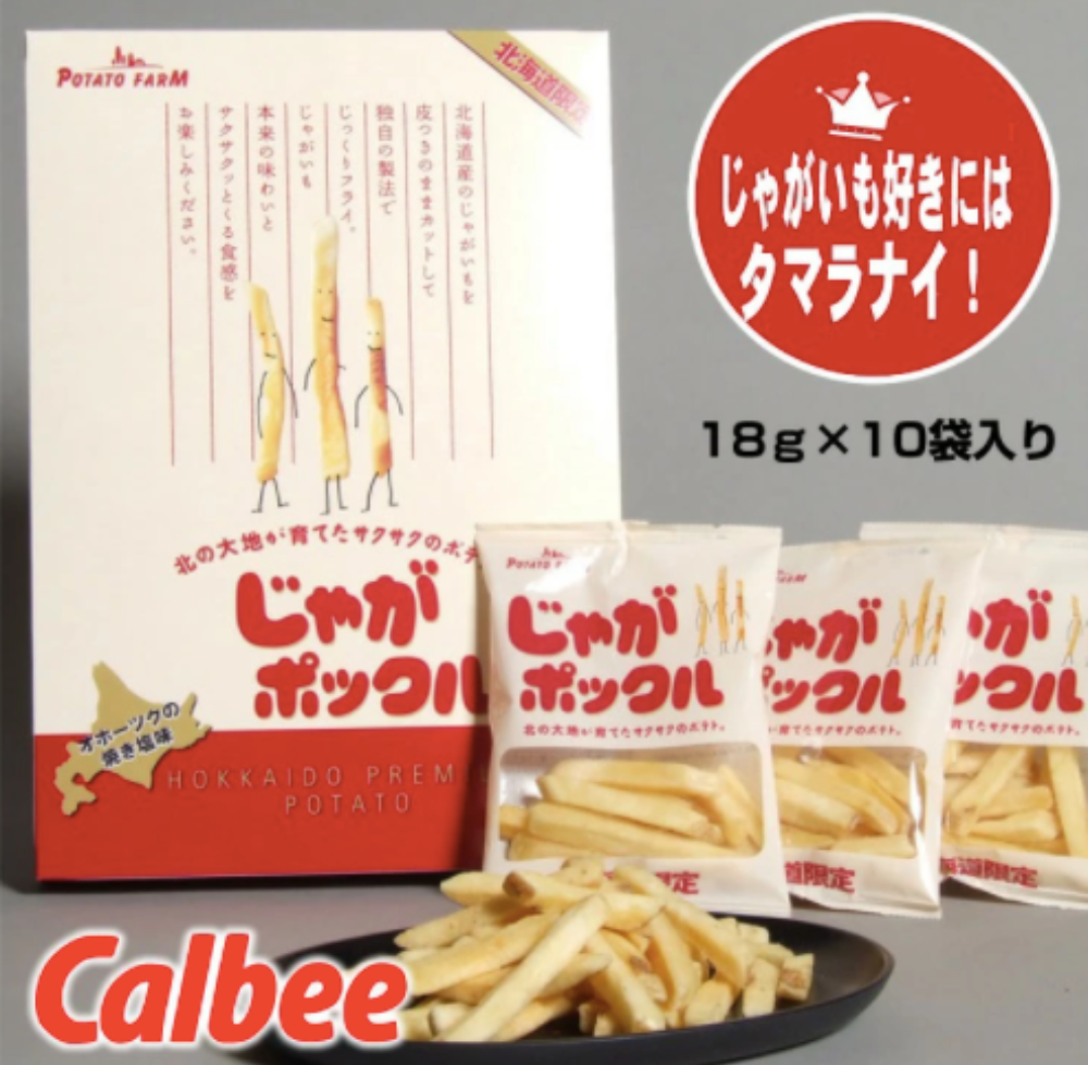 Calbee 北海道薯條三兄弟,採用北海道產馬鈴薯。為了保留原味與營養,帶皮切條,口感酥脆!恰到好處的鹽分和爽脆的口感,吃完讓人回味無窮!