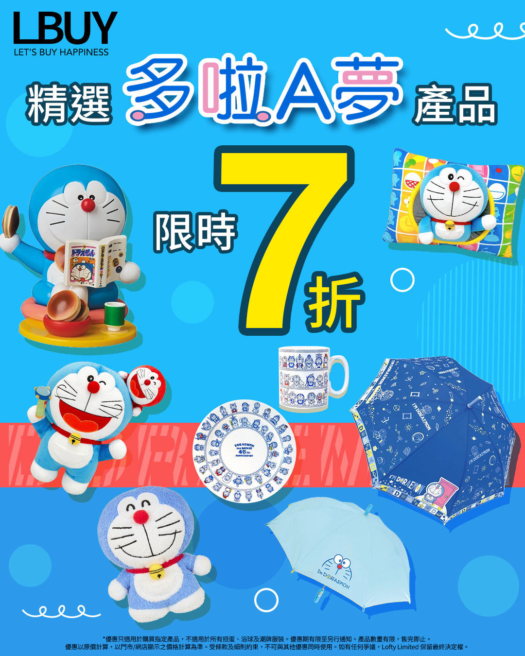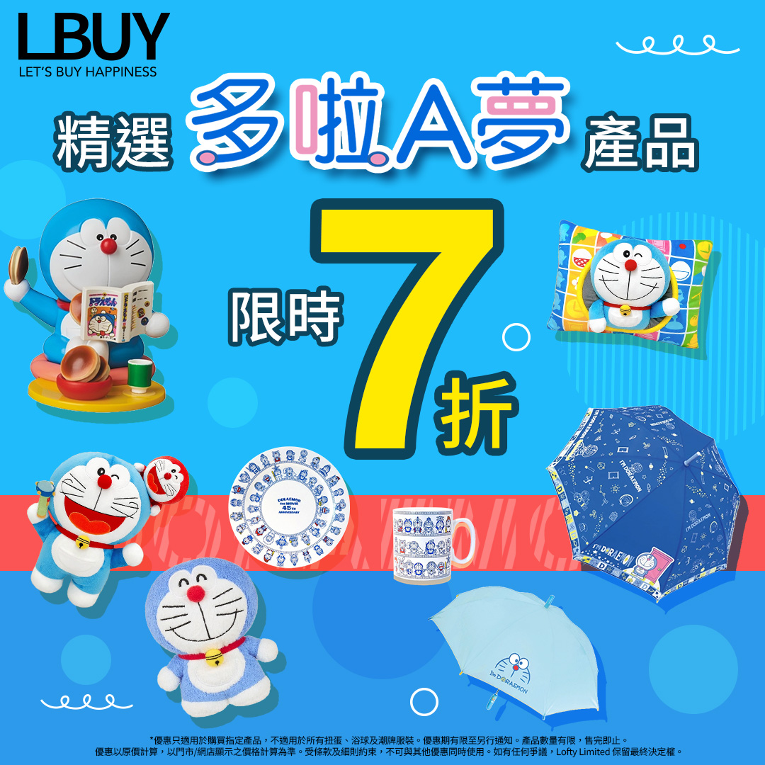 LBuy 同步送上「萌力應援」💫 精選多啦 A 夢商品限時 7 折 —— 從公仔、家品到實用小配件,讓多啦 A 夢把可愛與快樂帶回家,為生活添上一抹幸福藍!💙