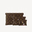 這款Kirigami Pochette採用Monogram塗層帆布製作,並綴有奪目的粉紅色皮革襯裡。三個信封形收納包仿如俄羅斯套娃般互相套在一起,而每個收納包皆飾有品牌吉祥物Vivienne或與朋友滑冰及乘坐雪橇情景的印花圖案,是極具收藏價值的百搭配飾。