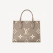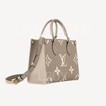 這款OnTheGo PM手挽袋取材自路易威登於1968年推出的著名Sac Plat,設計採用Monogram Empreinte皮革製造,並綴以Medium Bicolor Monogram壓花圖案。這個迷你版OnTheGo手挽袋可容納iPad Mini等必需品,而鉸接式頂端手柄及可調節長度的肩帶則可作不同的方式攜帶。