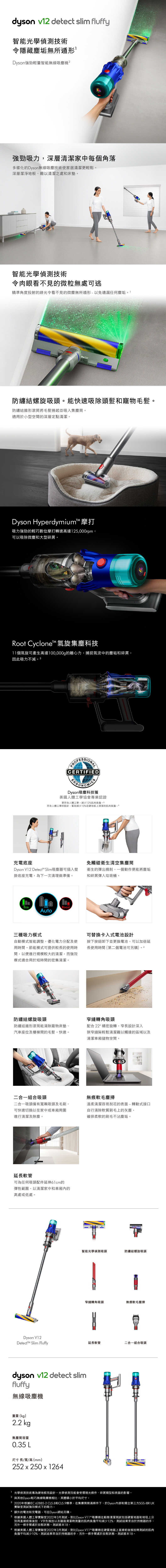 Dyson V12 Detect Slim™ Fluffy 無線吸塵機 (2022版)